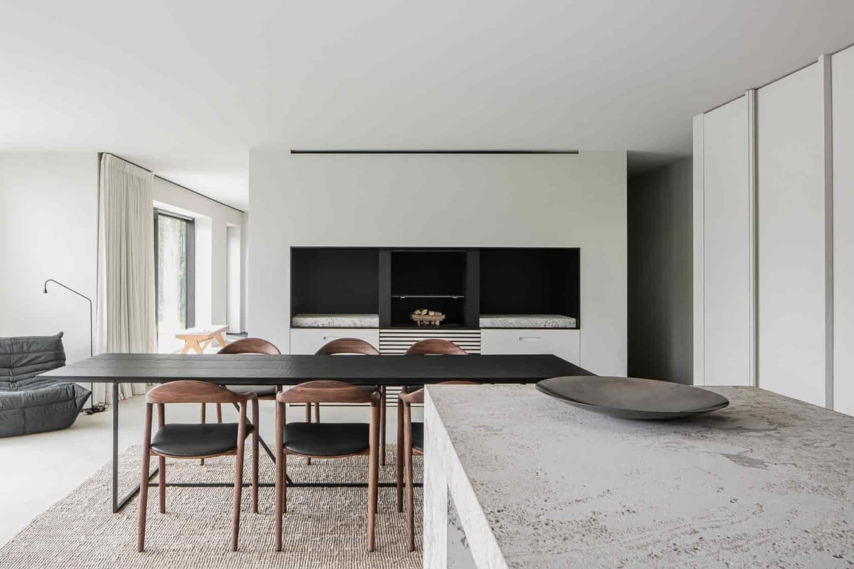 Nelle cucine contemporanee, il camino non è più un elemento ingombrante, ma si inserisce con discrezione e coerenza estetica. Le linee essenziali e i materiali innovativi – vetro, acciaio, pietra sinterizzata – si fondono con arredi su misura, contribuendo a un equilibrio perfetto tra tecnologia, efficienza e bellezza.